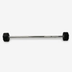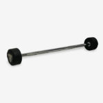 Lige stang med fastgjorte vægtskiver belagt med gummi. Designet til intensiv professionel brug. Stangen er lavet af forkromet stål.