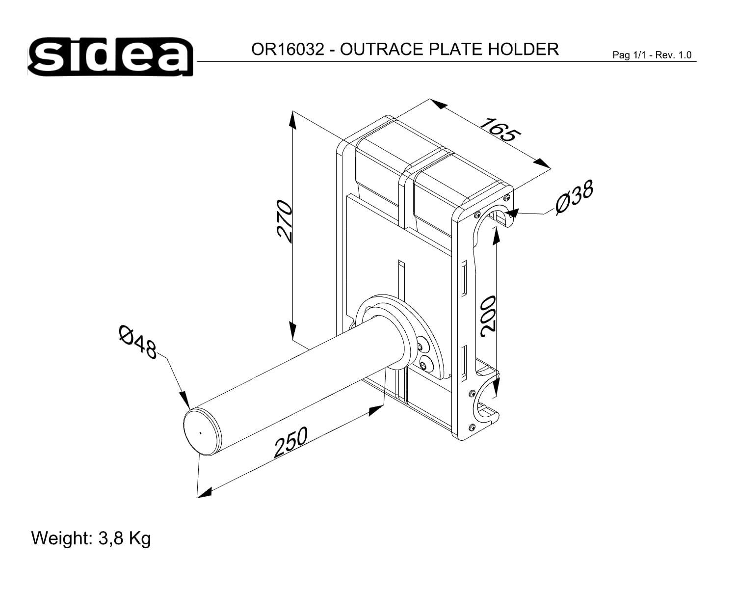 Outrace Plate Holder er en robust plade- og bumperholder af pulverlakeret stål med en diameter på 48 mm og en støttelængde på 250 mm til fastgørelse på Tiny Gym Ladder.