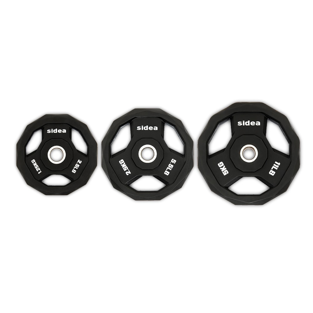 En serie af vægtskiver i polyurethan, designet til kommercielle fitnesscentre med høj brugerfrekvens.