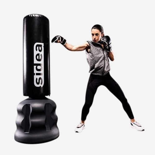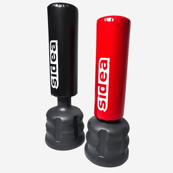 Den robuste plastfod, der skal fyldes med sand, sikrer pålidelighed og holdbarhed også ved hyppig brug. Sækken, 35 cm x 100 cm, er fyldt med polyurethan og er med sit tykke PVC lag og forstærkede syninger gjort ekstra modstandsdygtig. Det enkle koblingssystem tillader hurtig samling og giver mulighed for at indstille i tre forskellige arbejdshøjder: 155, 168 og 181 cm.