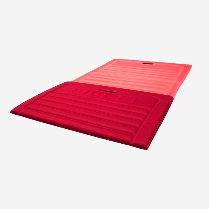 Måtten er lavet af varmeformet polyethylenskum og har et overfladelag af polyester-termokomprimeret stof, hvilket gør den både behagelig og modstandsdygtig. Den er let, holdbar og nem at rengøre. Desuden er den foldbar og udstyret med håndtag, hvilket gør den praktisk at transportere og hænge op.