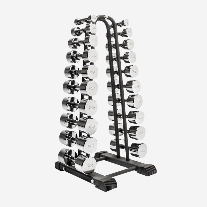 Pyramid Dumbbells Rack – Klassisk lodret rack, designet til at rumme op til 10 par håndvægte, såsom Neoprene Dumbbells og Chromed Dumbbells