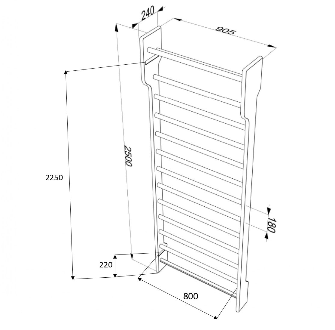 Traditionel robust ribbe designet til udførelse af trænings- og rehabiliteringsøvelser. De øverste tværpinde er udført med en løsning med to tværpinde, der adskiller sig fra den traditionelle form. De ovale pinde med en diameter på 26-38 mm er standard. Stabiliteten garanteres af træets kvalitet; europæisk bøg, der er ovntørret og lakeret.