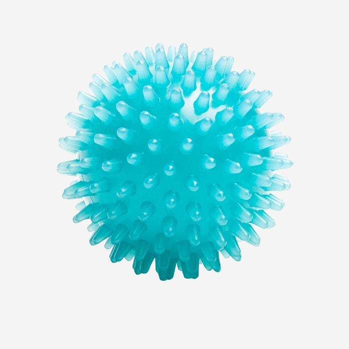 Spike Massage Ball har en overflade med faste gummipikes. Spidserne giver en stimulerende og dyb vævsmassage. Takket være dens størrelse og robuste overflade er massagepåvirkningen mere intens.